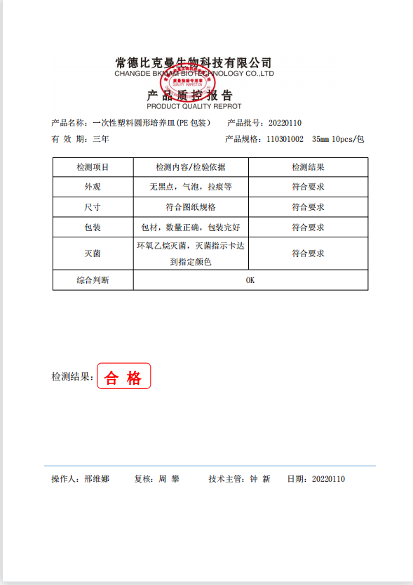 一次性塑料圓形培養(yǎng)皿 (PE塑料包裝) 35mm 10個(gè)袋 110301002 20220110